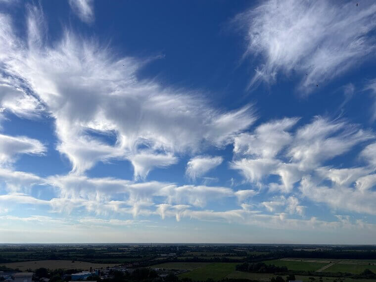 Cirrocumulus paints a classic “mackerel sky” with tiny ripples and rows that resemble fish scales scattered across blue. High and delicate at roughly 18,000–35,000 feet (5.5–11 km), these puffs arise from small‑scale convection in icy, dry layers, often downstream of jet‑stream disturbances. They rarely produce precipitation at the ground, but they telegraph instability aloft and a pattern shift within a day. An old mariner’s rhyme warns, “Mackerel sky, not twenty‑four hours dry.” See those tidy textures marching overhead? Expect evolving cloud decks next, and keep travel plans flexible if fronts or waves are nearby.
